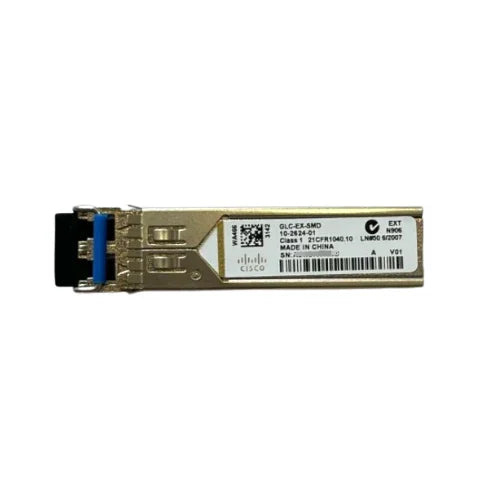 Cisco GLC-EX-SMD is a high-performance, hot swappable, small form-factor, pluggable (SFP) transceiver to support Gigabit Ethernet (1GbE) over single-mode fiber (SMF). It is optimized to work in enterprise networks, data centers and in service provider environments and supports long-distance transmission, up to 40 kilometers, with reliable, low-latency, and high-bandwidth operation. It is easily compatible with Cisco routers and switches, and, therefore, it is the best when it comes to network upgrades or expansion or replacement.